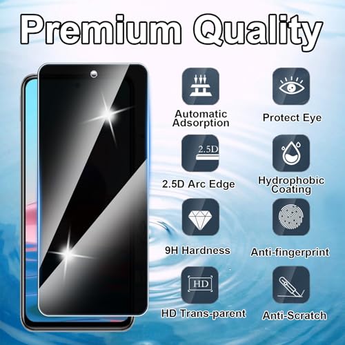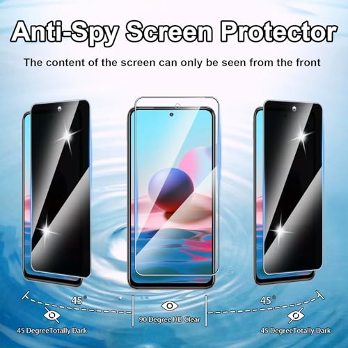 Hirshen - واقي شاشة زجاج بدرجة صلابة 9H، خال من الفقاعات، مضا للخدش، واقي شاشة لحماية الخصوصية مضاد للتجسس لموبايل ريدمي نوت 10S من هيرشين، قطعتان