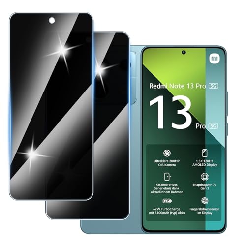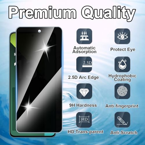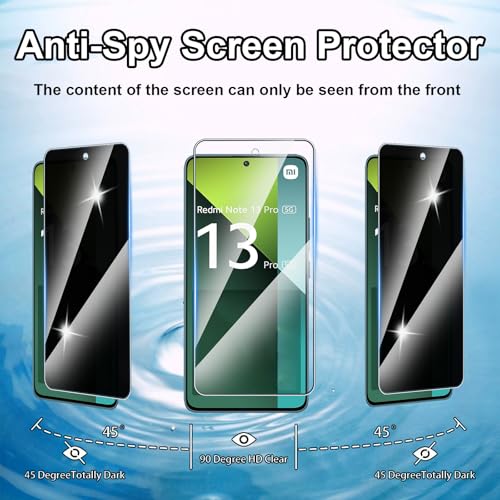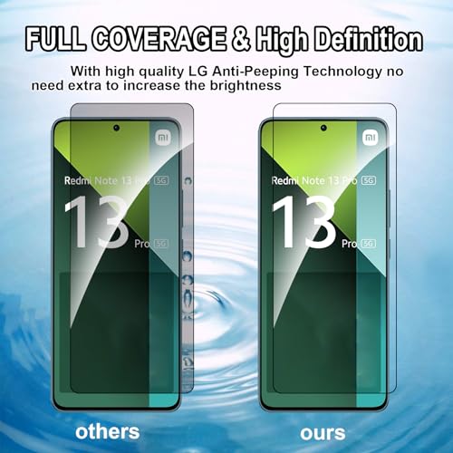 Hirshen - شاشة حماية زجاجية للخصوصية مضادة للتجسس من الزجاج المقوى المضاد للخدش بدرجة صلابة 9 خالية من الفقاعات لموبايل ريدمي نوت 13 برو 5G من هيرشين، من قطعتين