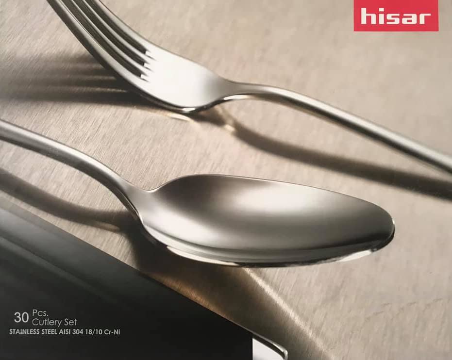 Hisar - طقم أدوات مائدة من ميركوري بلمسة نهائية لامعة عاكسة من هيسار- 30 قطعة | 6× ملاعق طاولة، 6× شوكات طاولة، 6× سكاكين طاولة، 6× ملاعق حلوى و6× شوكات حلوى | مصنوعة من الفولاذ المقاوم للصدأ 18/10 | 4 ملم