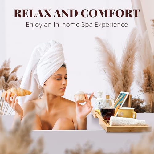 - مصممة من أجل أقصى درجات الراحة والراحة: هدفنا هو إنشاء تجربة استحمام فاخرة مخصصة لك فقط من خلال الحصول على جميع العناصر المفضلة لديك للحفاظ على راحتك في متناول اليد. تتميز صينية الحمام الخشبية هذه بمكان لحمل جميع ضرورياتك، بما في ذلك فتحة لكأس النبيذ الخاص بك، وفتحة للهاتف والتابلت للحفاظ على الإلكترونيات في مكانها بدون استخدام اليدين (يمكن استخدامها كحامل كتب)، وحامل شموع، وصينيتين سبا قابلين للإزالة لإكسسوارات إضافية مثل الشوكولاتة والمناشف وما إلى ذلك