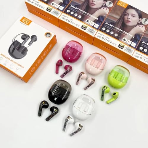 Generic - سماعة لاسلكية R20 بلوتوث 5.3 بمكبرات صوت داخلية ديناميكية 13 ملم مزودة بتقنية Hi-Res وتقنية الصوت اللاسلكية LDAC مع ميزة إلغاء الضوضاء للمكالمات وتحكم باللمس الذكي من هيت بودز، مدة البطارية 5 ساعات