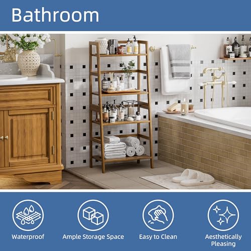 - أرفف أنيقة وعصرية - يمكن استخدام رف الكتب المصنوع من الخيزران متعدد الوظائف هذا كخزانة كتب مكتبية أو خزانة حمام أو حامل نباتات أو رف عرض أو أي منظم تخزين آخر لمساحتك. الرف العصري الأنيق مثالي لتزيين غرفة المعيشة وغرفة النوم والمكتب المنزلي والحمام والمطبخ والشرفة.