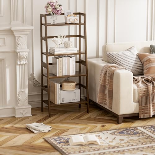 - رف كتب مفتوح من 4 طبقات - يتميز رف السلم بـ 4 أرفف بأحجام مختلفة، أرفف التخزين المفتوحة تصبح أوسع من الأعلى إلى الأسفل وتوفر مساحة واسعة لعرض أو تخزين كتبك المفضلة أو الحرف اليدوية أو المقتنيات أو ألبومات الصور أو المناشف أو الألعاب أو النباتات أو غيرها من العناصر الزخرفية للحفاظ على مساحتك منظمة وأنيقة.
