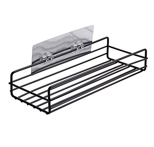 HITSHREE - رف تخزين معدني متعدد الأغراض بدون ثقب مع ستيكر لاصق مغناطيسي سحري قوي، حامل حديد لتعليق أغراض المطبخ والدش، أسود من هيتشري