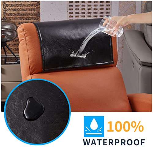 Hittun - اغطية مسند راس مضادة للانزلاق وقابلة للغسل من الجلد الصناعي من هيتون، اغطية مسند راس مقاومة للماء للاريكة والاثاث وكرسي المكتب ومقعد المسرح (اسود)