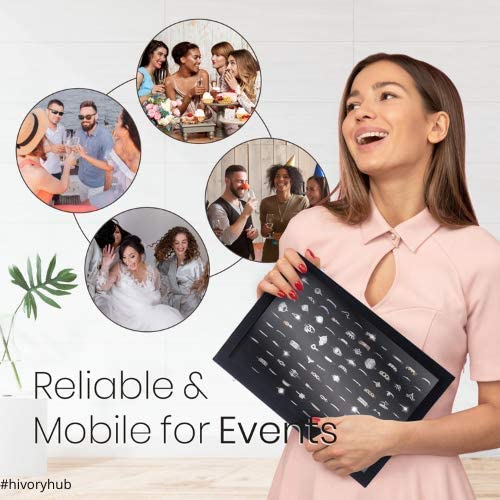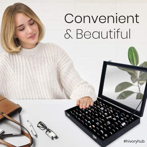 Hivory - صندوق تنظيم الخواتم بغطاء شفاف لعرض الخواتم في المتاجر والمعارض والمنزل، صينية مجوهرات لتنظيم الخواتم والأقراط، لون أسود