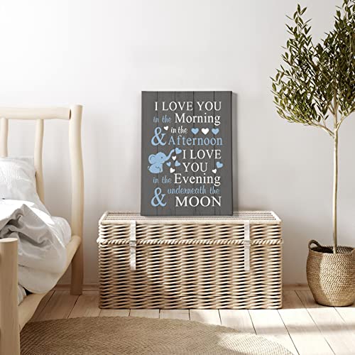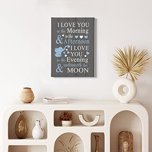 HIWX - ديكور حضانة فيل صغير من هيوكس - لوحة قماشية مؤطرة بعبارة I Love You In The Morning، لوحة فنية جدارية على شكل فيل لغرفة نوم الأطفال مقاس 11 × 14