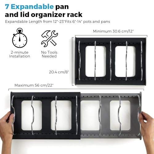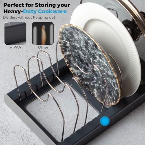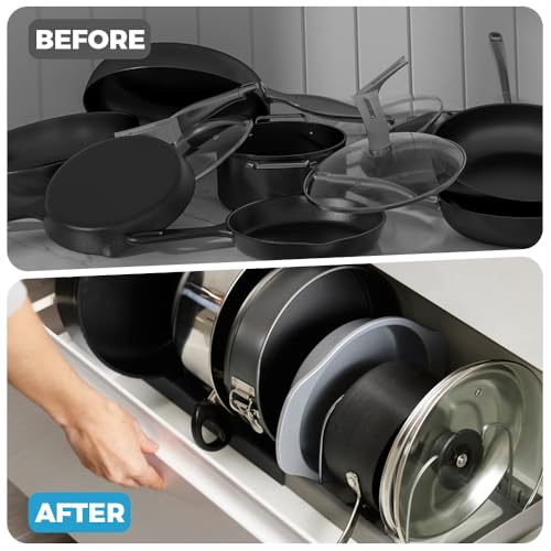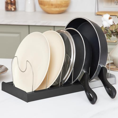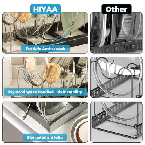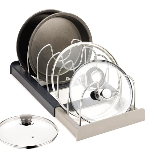 HIYAA - منظم أواني طهي ورف للمقالي قابل للتوسيع، حامل أطباق وأغطية دولاب المؤن موفر للمساحة لأغطية المقالي وصواني الخبز من هييا - رمادي