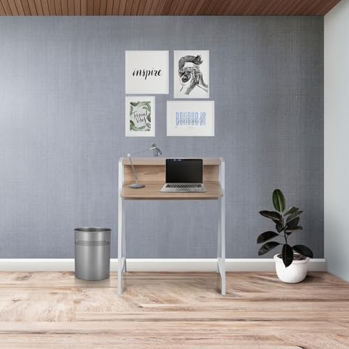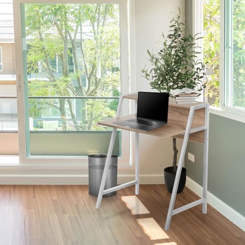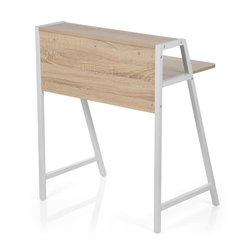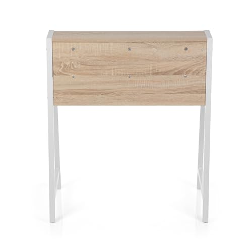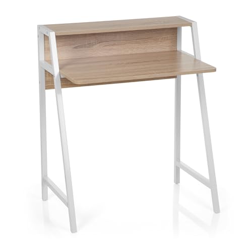 hjh OFFICE - مكتب كمبيوتر صغير تش جيه اتش اوفيس من خشب البلوط/الأبيض مع مساحة تخزين 634720 من دومونت