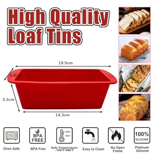 - [تتضمن المجموعة]: تتضمن المجموعة ما مجموعه 2 قالب خبز مستطيل من السيليكون بأبعاد 19 × 9.5 × 5.5 سم، وهو أكثر من كافٍ لتلبية احتياجاتك.
