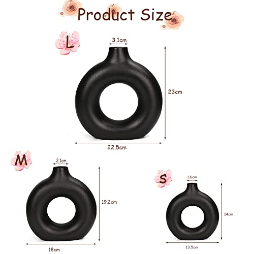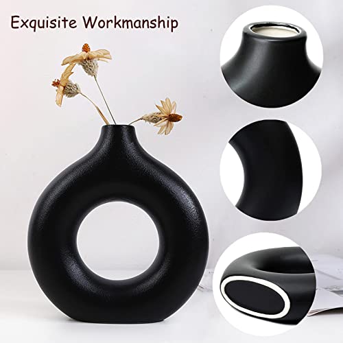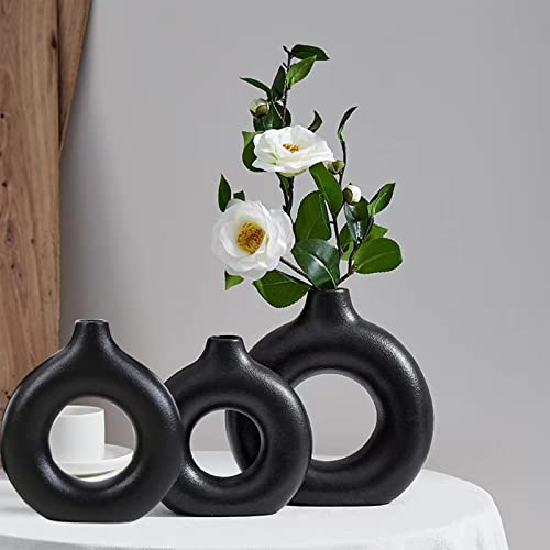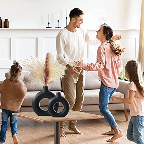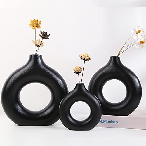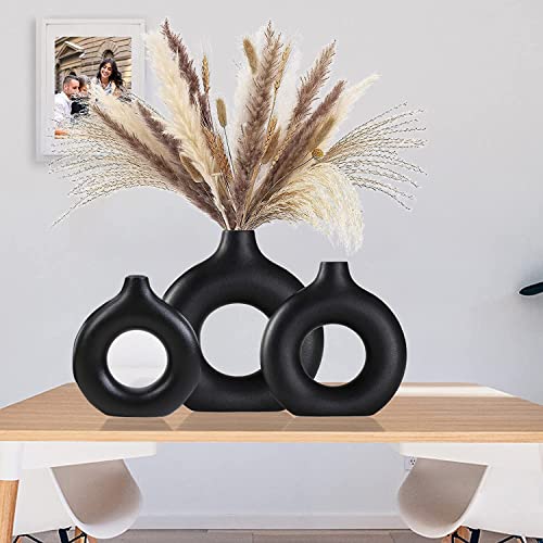 HJZZLX - فازة سيراميك لعشب البامباس، لتزيين غرفة المعيشة، بتصميم دونات، عصرية ومزخرفة من اتش جيه زد ال اكس، بأطوال مختلفة صغير ومتوسط وكبير، لون أسود