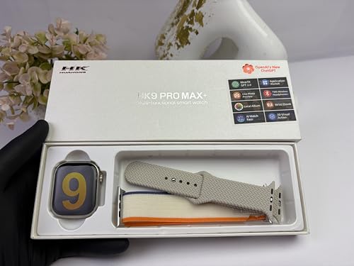 Generic - ساعة اتش كيه 9 برو ماكس بلص الذكية للرجال والنساء 49 ملم ، شاشة AMOLED عالية التحديث بوصلة ان اف سي للياقة البدنية سلسلة الترا سواران لون سلفر