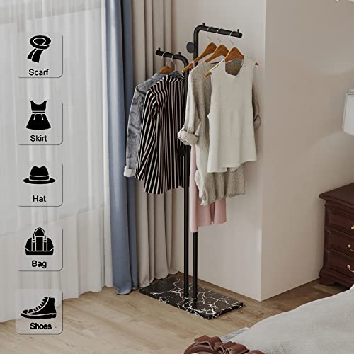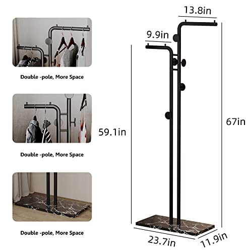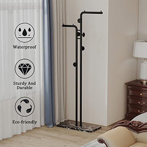 HKaikzo - حامل معاطف مزدوج القطب قائم بذاته معدني عصري مع 5 خطافات وقاعدة من الرخام الطبيعي لغرفة النوم والمكتب والرواق والمدخل وغرفة المعيشة اسود هاكيهكزو
