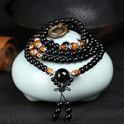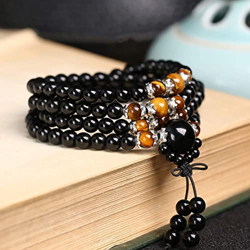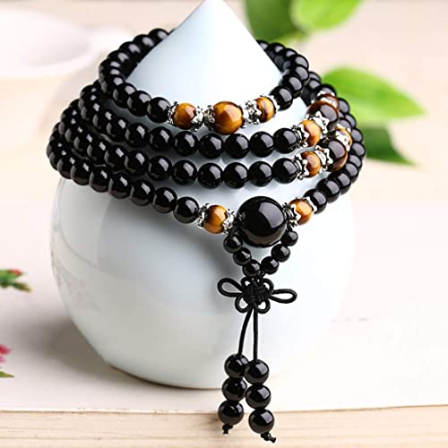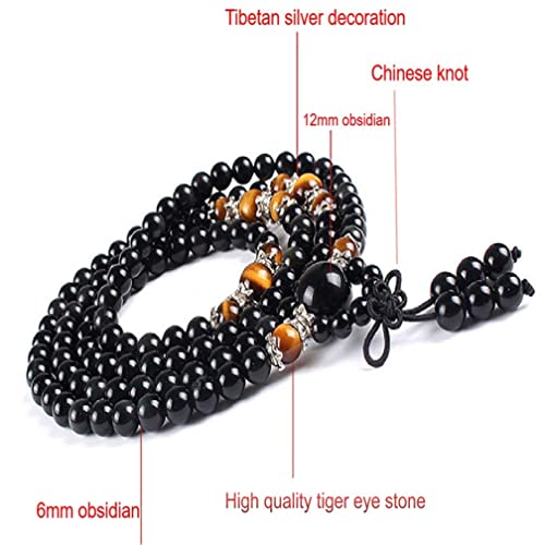 HLARK - سوار من 108 قطعة خرز مالا وزجاج بركاني واحجار عين النمرمن اتش ال ارك