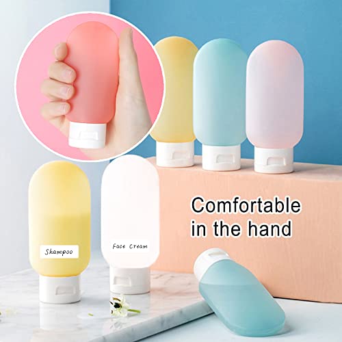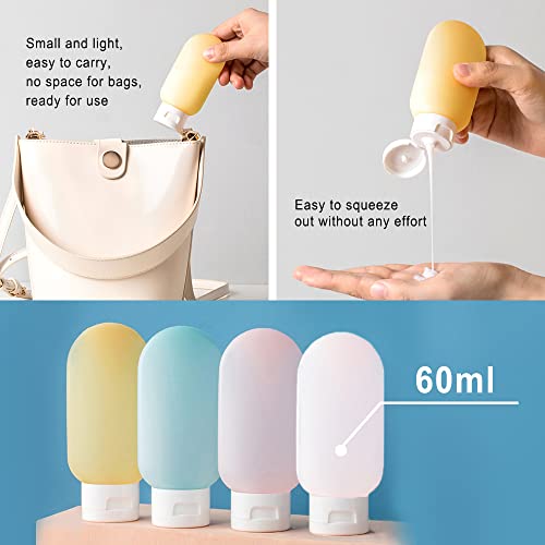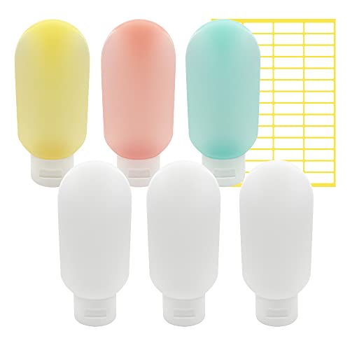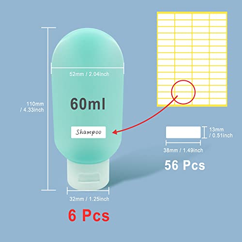 HLIWS - زجاجات سفر مقاومة للتسرب قابلة لاعادة الملء سعة 60 مل من هليوس، حاويات سفر بلورية، للشامبو السائل، مع 56 ملصق (1 احمر، 1 اخضر، 1 اصفر + 3 ابيض)