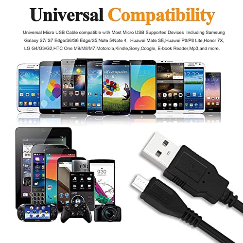 - ما تحصل عليه - نقدم كيبل شاحن مايكرو USB بطول 1.8 متر/6 قدم، للألعاب أو المكتب أو الأريكة أو السرير أو شاحن السيارة. إذا كانت لديك أي أسئلة، فسنرد على مشكلتك في غضون 24 ساعة.