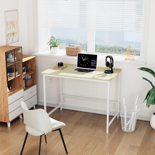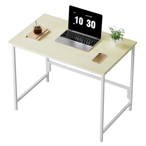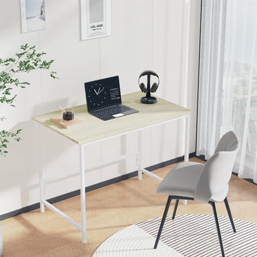 HLONONE - مكتب وطاولة كمبيوتر صغيرة مثالي للمكتب أو الدراسة أو غرفة النوم يتميز بإطار معدني وتصميم عصري وبسيط من هلونون، 80 × 50 × 74 سم، البني الفاتح