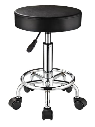 HMTOT - كرسي دوار دائري قابل للتعديل من اتش ام توت، لون أسود، نمط عصري، مقعد من البولي يوريثين، مقاس صغير، ارتفاع 65 سم، سعة وزن 113 كجم، سهل التجميع، كرسي مكتب للتدليك والسبا