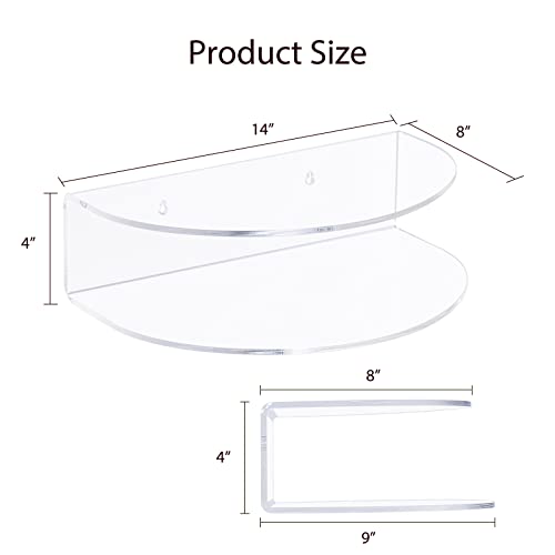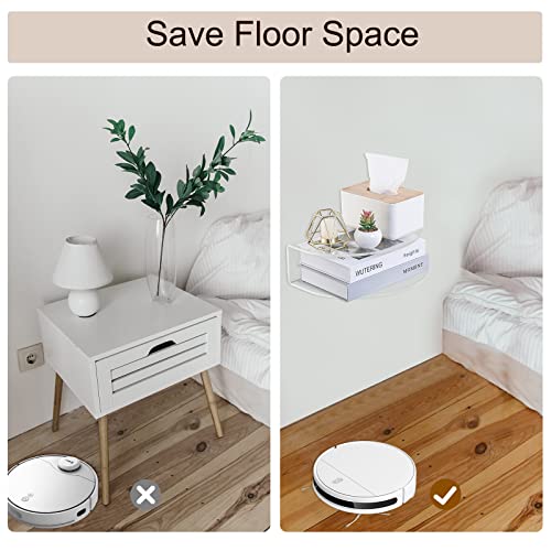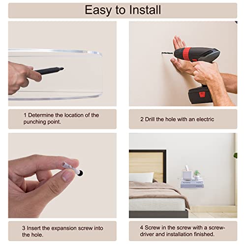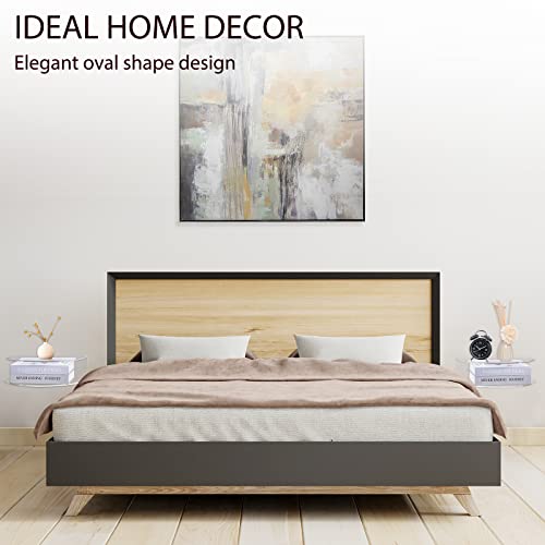 HMYHUM - طقم كمودينو سرير معلق من الاكريليك يثبت على الحائط لغرفة النوم من هومي هوم، طاولة سرير جانبية معلقة لغرفة النوم، رف جانبي للسرير بتصميم بيضاوي بحمولة 4.5 كجم، طول 36 سم×عرض 20 سم× ارتفاع 10 سم، شفاف
