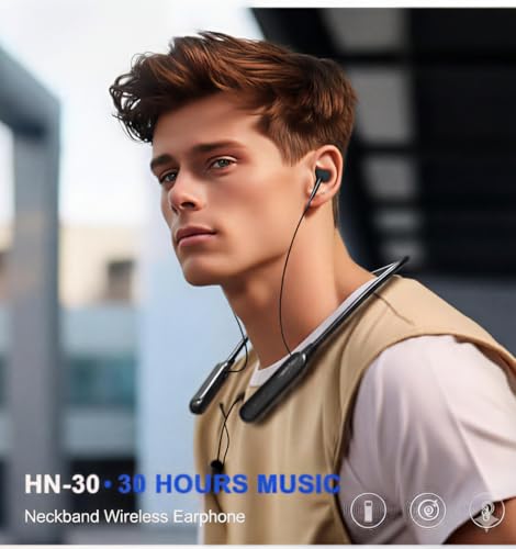 Generic - HN-30 سماعة طوق لاسلكية مع إلغاء الضوضاء البيئية، بطارية 30 ساعة، بلوتوث 5.4، أسود، تحكم باللمس، مدى 10 متر
