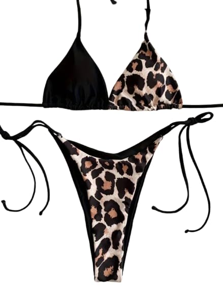 هنادي - بكيني قطعتين بتصميم اسود مع نقشة التايجر، خامة زبدة كورية ليكرا عالية الجودة - HN 6017، مقاس واحد