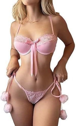 هنادي - لانجري نسائي مثير بنمط بيكيني قصير مزين بكرات فرو جانبية – قميص نوم بيبي دول انيق لاطلالة جريئة ومختلفة – كود HN8016