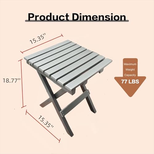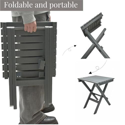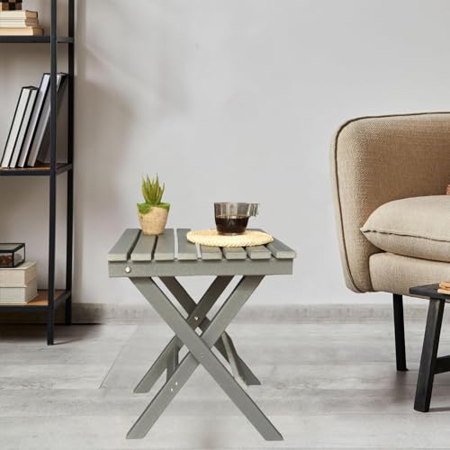 Hngilkoo - طاولة قهوة جانبية من اتش ان جيلكو مصنوعة من البولي ايثيلين عالي الكثافة للاستخدام الخارجي مربعة صغيرة قابلة للطي للفناء والحديقة والشرفة وحمام السباحة، لون رمادي