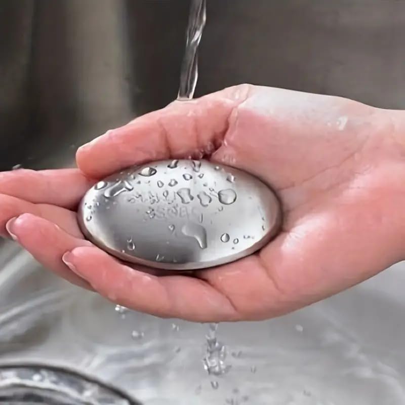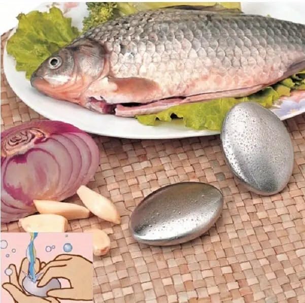 - صابونة من الفولاذ المقاوم للصدأ مصنوع من صابون معدني عالي الجودة يزيل الروائح الكريهة مثل الأسماك واللحوم والثوم والبصل.
