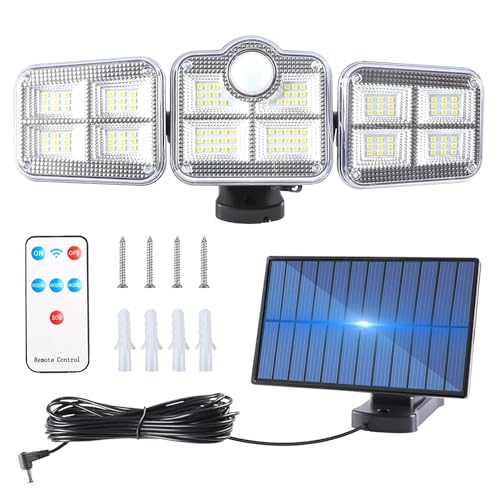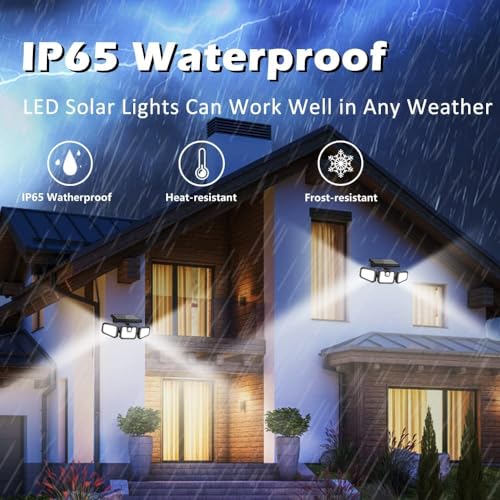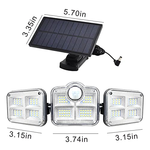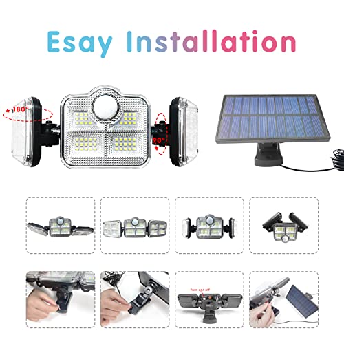 - 【3 رؤوس مصابيح شمسية قابلة للتعديل】تحتوي المصابيح الشمسية على 3 رؤوس قابلة للتعديل يمكنها تدوير رؤوس المصباح بحرية، وتعديلها لأعلى أو لأسفل وأفقيًا. يمكنك الحصول على منطقة كشف أوسع وإضاءة المكان الذي تريده.
