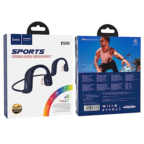 HOCO - سماعة بلوتوث ريما رياضية بتقنية التوصيل الهوائي من هوكو ES50، بلوتوث V5.0، وقت الاستخدام: تصل إلى 6 ساعات، وقت الاستعداد: حتى 120 ساعة، متوافقة مع آيفون وسامسونج وون بلس وهواوي وشاومي وأوبو - لون أزرق