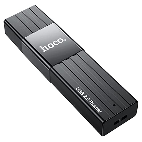 HOCO - قارئ بطاقات اتش بي 20 مايندفول 2 في 1 USB2.0، يدعم بطاقة تي اف/اس دي متوافق مع ويندوز وماك او اس من هوكو، لون أسود