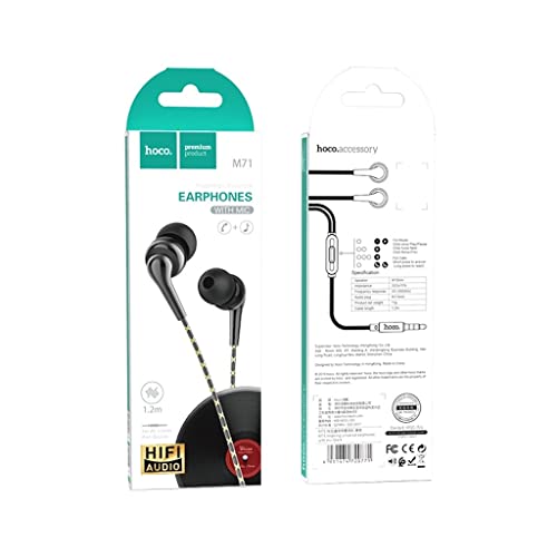 HOCO - سماعات اذن ام 71 بميكروفون من هوكو (الطول: 1.2 متر، المنفذ: 3.5 ملم) متوافق مع موبايل ايفون وسامسونج وشاومي واوبو - اسود، سلكي، داخل الأذن