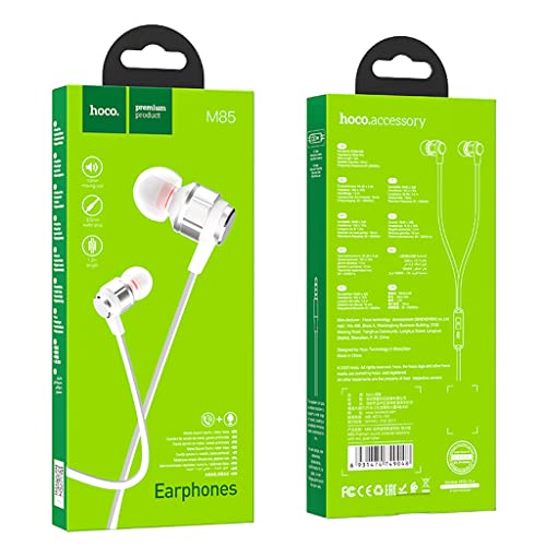 HOCO - سماعة اذن بلاتينيوم ساوند يونيفرسال بميكروفون من هوكو M85 - (الطول: 1.2 متر، القابس: 3.5 ملم) متوافقة مع موبايل ايفون وسامسونج وشاومي واوبو - لون فضي لامع