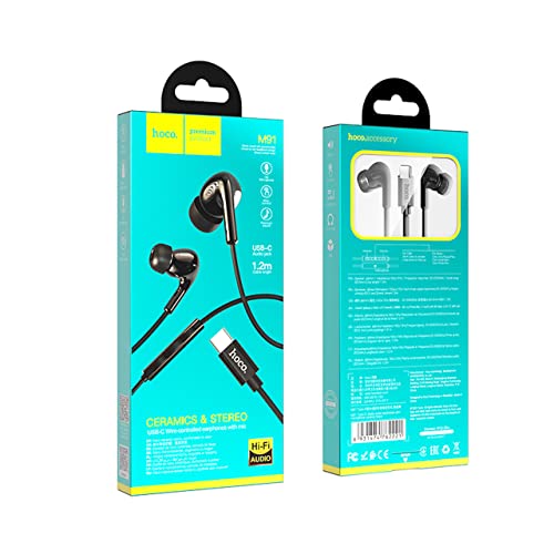 HOCO - سماعات اذن شيلي M91 بسلك ومنفذ نوع سي مع ميكروفون من هوكو الطول: 1.2 متر الفيشة: متوافقة هواوي وشاومي وون بلس - سيراميك ابيض