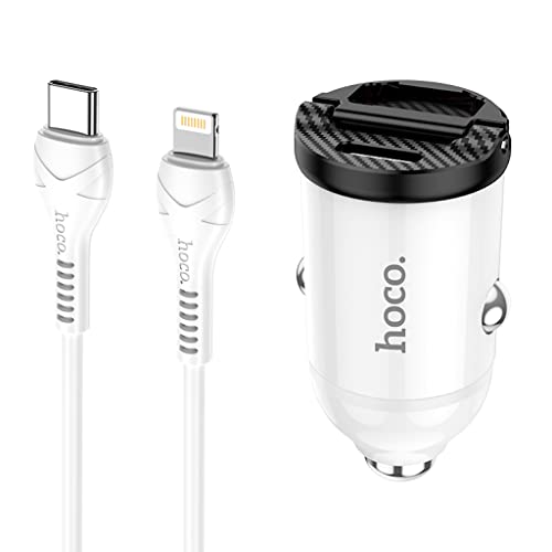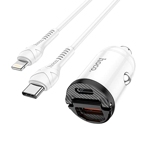 HOCO - طقم شاحن سيارة سريع بمنفذين USB من نوع ايه مع كابل سي 1 متر بقدرة 30 وات يدعم تقنية الشحن السريع QC3.0 AFC FCP SCP متوافق ايفون وسامسونج وشاومي واوبو وهواوي ابيض