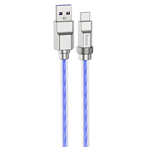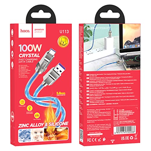 HOCO - كابل شحن ونقل بيانات سريع من السيليكون بموصل USB نوع ايه إلى سي بقوة 100 وات وسعة 6 أمبير متوافق مع أجهزة سامسونج وهواوي وشاومي وأوبو هوكو لون أزرق مقاس بطول 1 متر موديل U113 - Solid