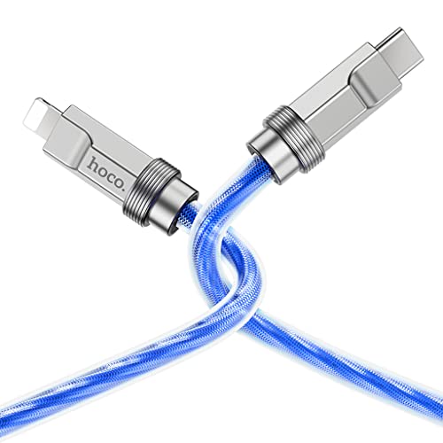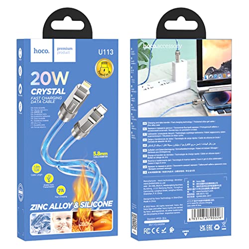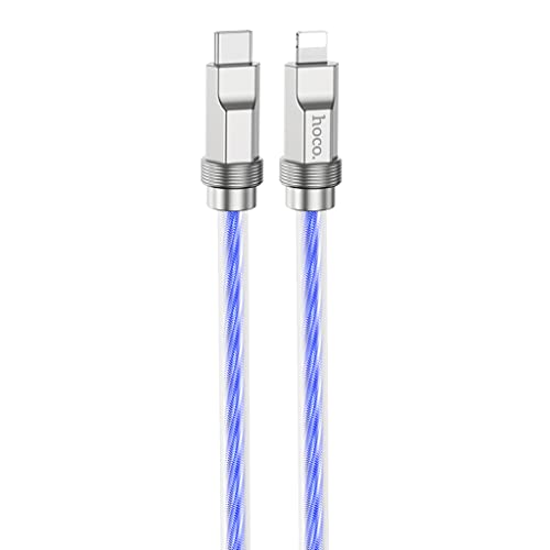 HOCO - كابل يو 113 من السيليكون الصلب للشحن السريع ونقل البيانات 20 وات - 3 امبير - 1 متر مقبس USB-سي إلى لايتنينج هوكو متوافق مع آبل آيفون واي باد وايربودز أزرق
