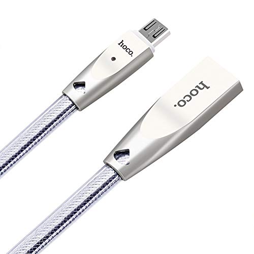 HOCO - كابل شحن يو9 مصنوع من قماش محبوك مع هلام وخليط الزنك، صغير، فضي