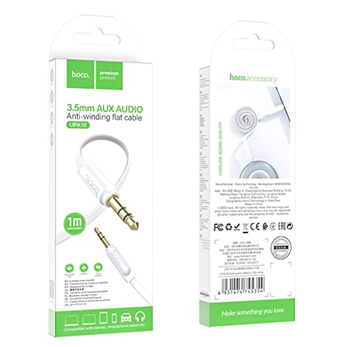 HOCO - كابل صوت ايه يو اكس مع مقبس مطلي بالذهب من هوكو UPA16 للموبايل والتابلت (الطول = 1 متر) ابيض، لالهواتف المحمولة