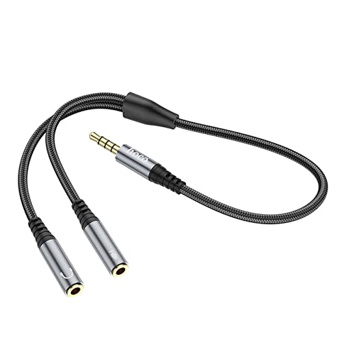 HOCO - محول صوت سماعة رأس 2 في 1 ذكر إلى أنثى قابس 3.5 ملم من هوكو UPA21 الطول: 25 سم - رمادي معدني