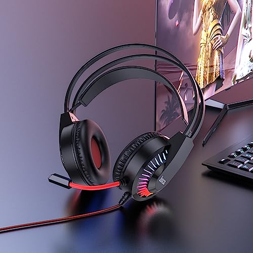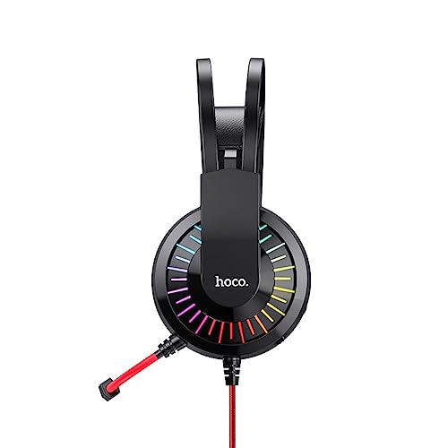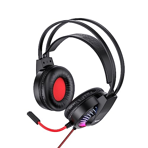 HOCO - سماعات رأس للألعاب جويفول W105 من هوكو، قابس بمنفذ USB: 3.5، طول الكابل: 2 متر، متوافقة مع أجهزة اللاب توب وأجهزة الكمبيوتر المكتبية - لون أحمر، سلكي