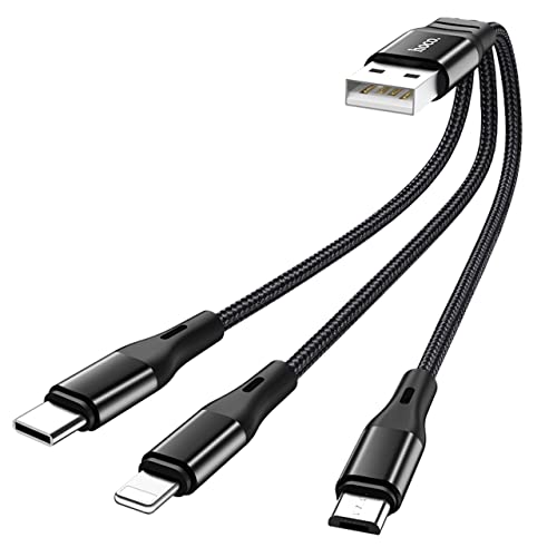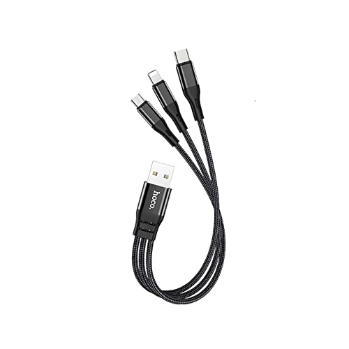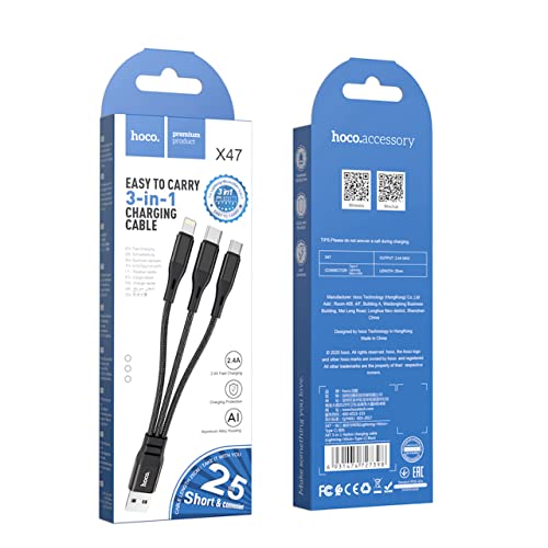HOCO - كابل لايتنينج ومايكرو والنوع سي للشحن ونقل البيانات 3 في 1 هاربر من هوكو X47، 25 سم - اسود