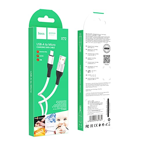 HOCO - هوكو X72 - كابل شحن ونقل البيانات من السيليكون 1 متر - 2.4 امبير وصلة USB الى مايكرو متوافق مع سامسونج وهواوي وشاومي واوبو - لون ابيض