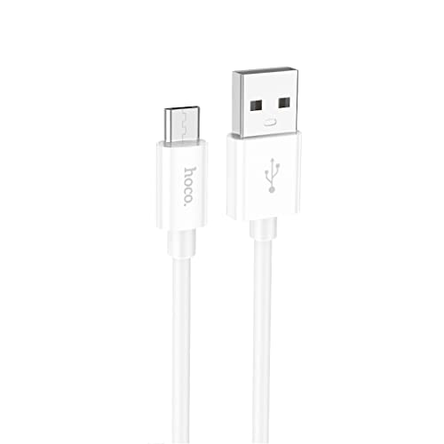 HOCO - كابل شحن ونقل بيانات سيليكون X87 من هوكو قابس USB نوع إيه إلى مايكرو متوافق مع سامسونج وهواوي وشاومي وأوبو 2.4 أمبير 1 متر أبيض
