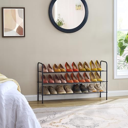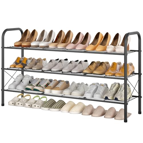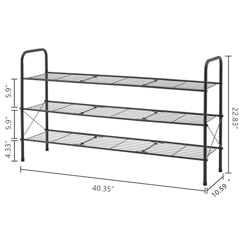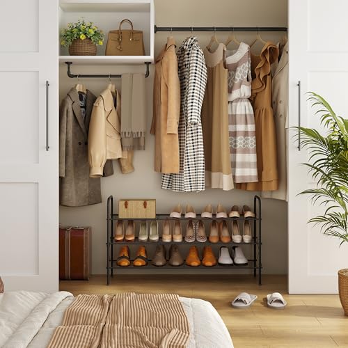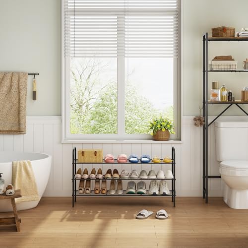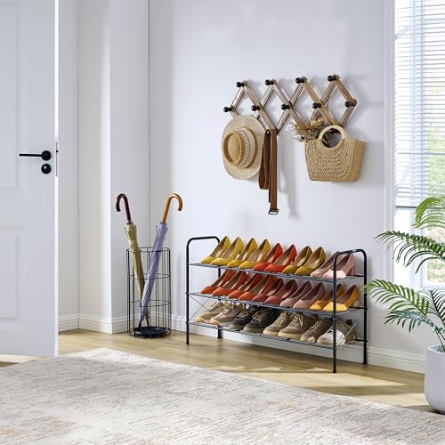 Hoctieon - رف احذية من 3 طبقات للمدخل قائم بذاته للخزانة انبوب معدني صناعي منظم تخزين الاحذية موفر للمساحة للحمام والمرآب والممر وغرفة النوم المعيشة وخزانة الملابس هوكتيون أسود