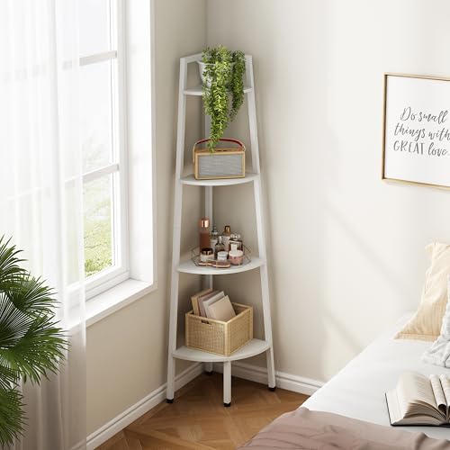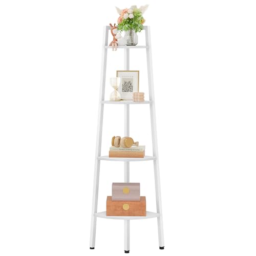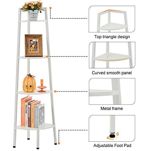 Hoctieon - رف زاوية من هوكتيون للكتب 4 أرفف سلم ريفي عرض صناعي لغرفة المعيشة والمطبخ والمكتب المنزلي والشرفة والمساحات الصغيرة بإطار معدني أبيض خشب