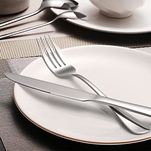 BAKEVIC - مجموعة أدوات مائدة من الفولاذ المقاوم للصدأ مكونة من 30 قطعة لـ 6 أشخاص، مجموعة مكونة من سكينة وشوكة وملعقة للمنزل والحفلات والمطعم وآمنة للاستخدام في غسالة الصحون ومقاومة للصدأ