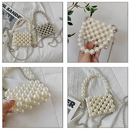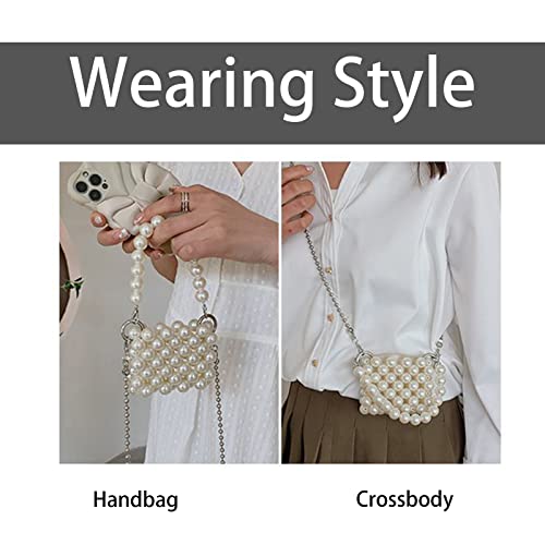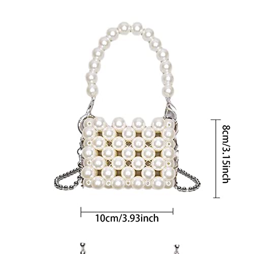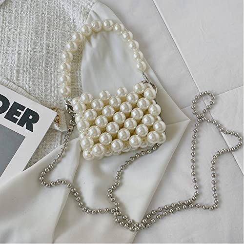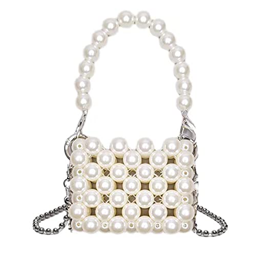 hogoo - شنطة كروس فاخرة من اللؤلؤ بسلسلة مزينة بالخرز هوجو، يد وكتف صغيرة لطيفة للنساء لحفلات الزفاف، وتصلح كهدية للبنات والنساء، بلون أبيض