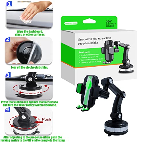 HOH - حامل موبايل للسيارة بقاعدة تثبيت بالشفط من هوه، حامل موبايل عالمي للوحة العدادات/ الزجاج الأمامي/ النافذة، حامل موبايل قوي للتثبيت في السيارة (اخضر)