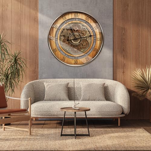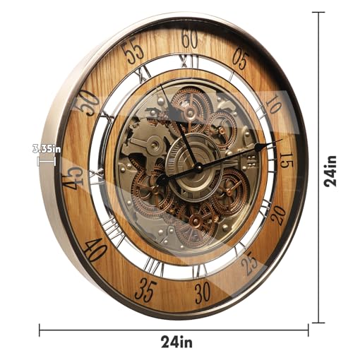 HOIBAI - هيباي ساعة حائط كبيرة بتصميم تروس متحركة مقاس 24 انش لديكور غرفة المعيشة بتصميم ريفي عتيق بنمط ستيمبنك وبيت المزرعة للمنزل والمطبخ وغرفة النوم والمكتب